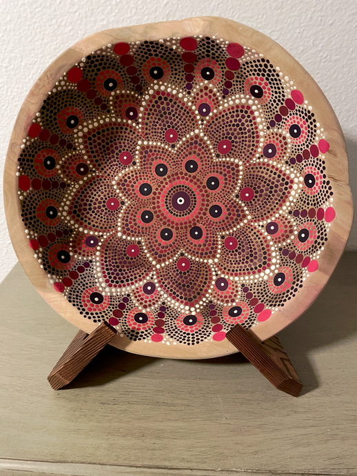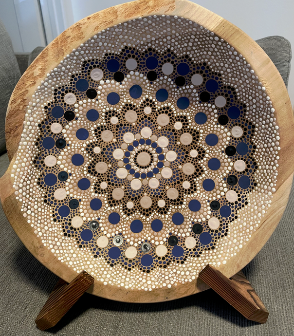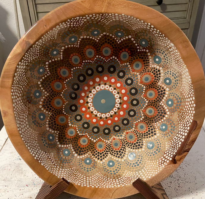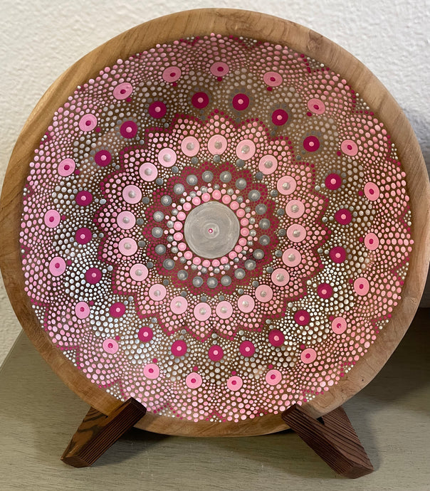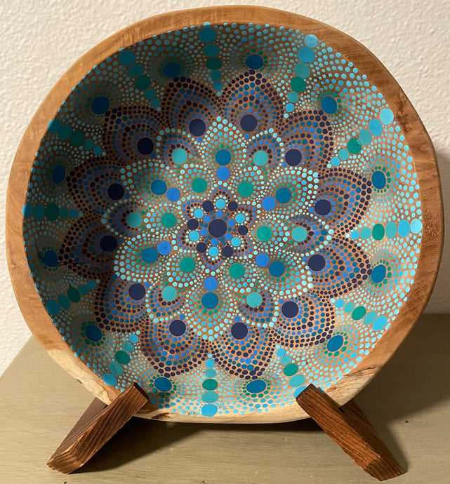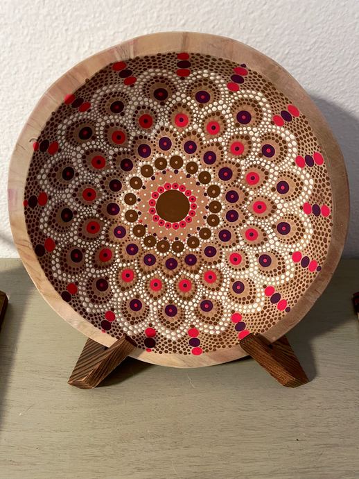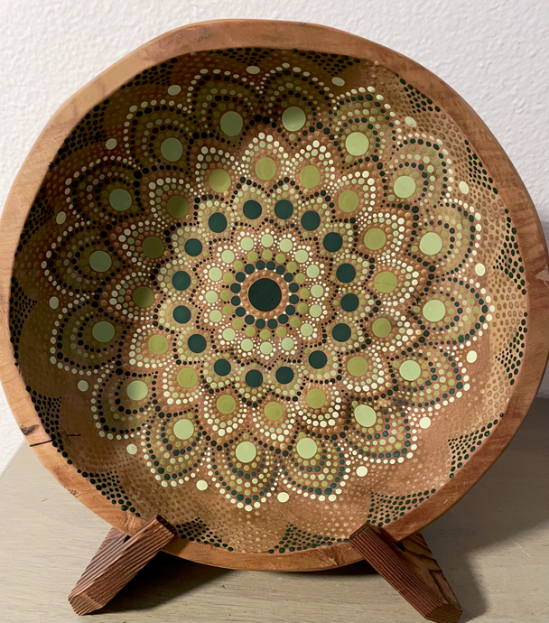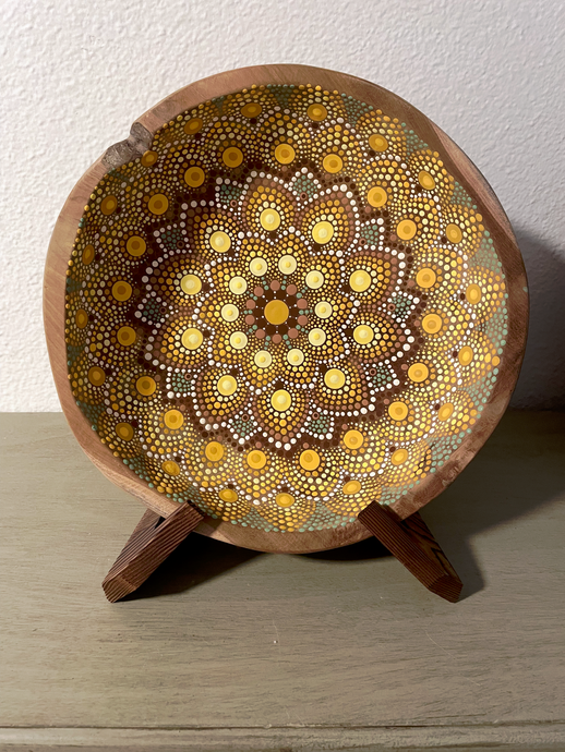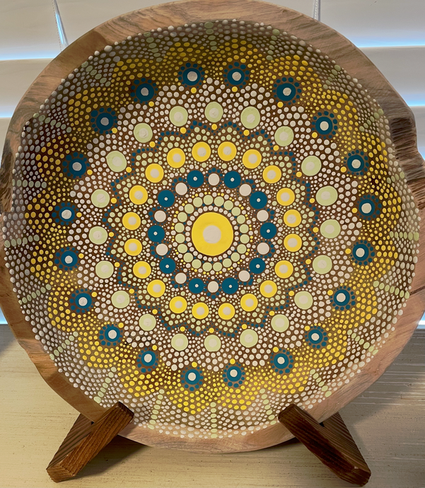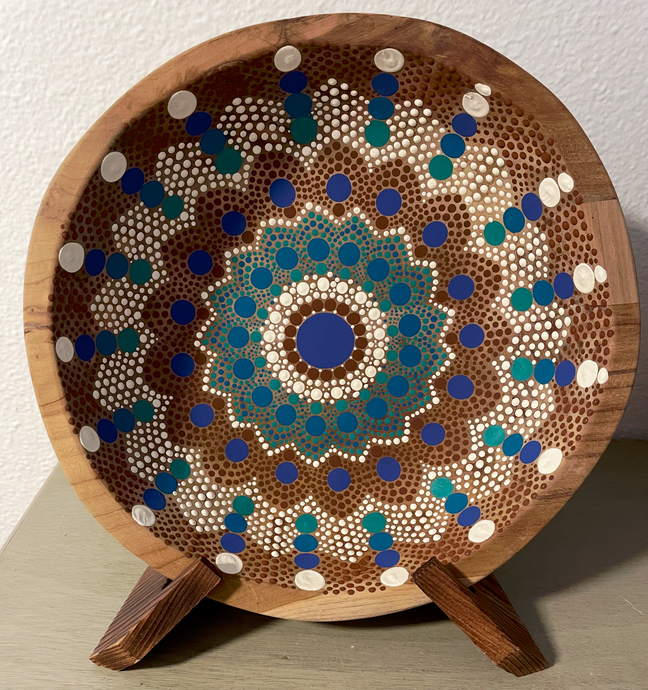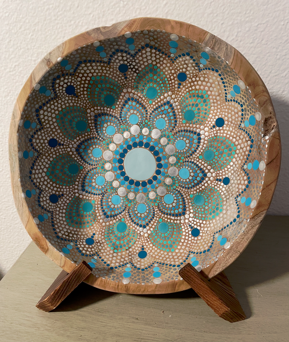 These recycled teak bowls from Indonesia are all hand painted by Kim and take anywhere from 7 - 10 hours of time to complete. Each is totally unique and created with the energy and positivity of that day's feelings and interactions.